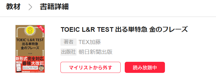 ランキングトップの本「TOEIC L&R TEST 出る単特急 金のフレーズ」を選択してみます。TOEIC対策として定番の本だそうです。