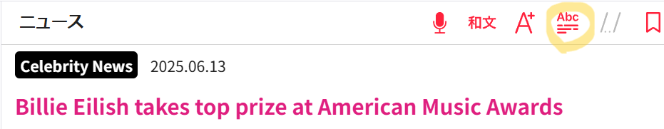 abceed_news_ビリーアイリッシュの記事の単語レベル