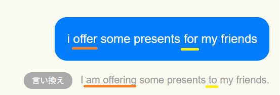 すると、瞬時に「言い換え」として正しいであろう英文が表示された。もう少し続けてみる。
